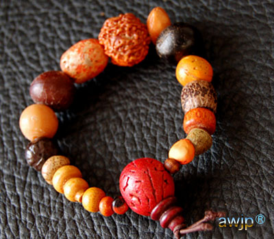 金剛菩提樹の実 ブレスレット 数珠 念珠・色々な菩提樹の実 - 種 ブレスレット